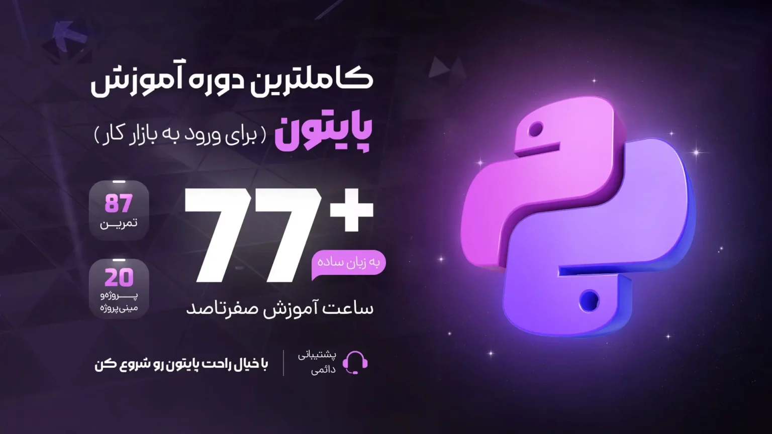 دوره آموزش پایتون هورتاش با رویکردی پروژه‌محور و پشتیبانی دائمی، شما را از صفر تا حرفه‌ای پیش می‌برد. با انجام پروژه‌های عملی و یادگیری کاربردی، مهارت لازم برای ورود به بازار کار، ساخت نرم‌افزار، وب، هوش مصنوعی و حتی بازی‌سازی را به‌دست می‌آورید.